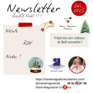 Bonjour ! Bienvenue chez Marie-Maguelone Créations, voici la Nouvelle Newsletter !